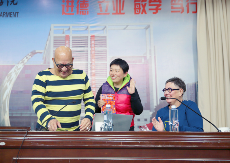 为丰富我院师生当代艺术理念和知识,提升艺术素养,11月6日,法国当代艺术大师Eloyime feria教授与Francoise Vincent教授应邀为创意学院师生在图文报告厅作了题为“法国当代艺术与艺术教育”的学术讲座。