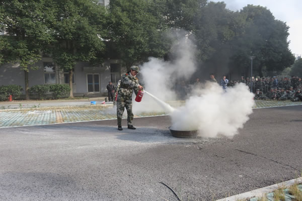 消防官兵首先对全体新生进行了消防安全知识培训,同学们在认真学习了干粉灭火器正确的使用方法及灭火注意事项后,在消防官兵的指导下分别进行了灭火演练,并在37号学生公寓楼进行了疏散逃生演练。