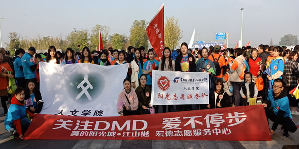 11月10日,人文学院“菁果”志愿服务队、机电学院蓝领巾志愿服务队”携手阳光志愿服务队齐聚新龙湖音乐公园,开展“为爱毅行永不止步”关爱DMD儿童毅行八公里志愿服务活动,旨在普及DMD知识,为身患DMD罕见病症的儿童争取更多的社会关注与关爱。