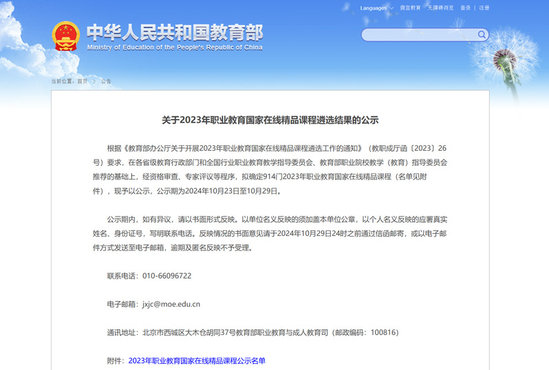 10月23日,教育部发布了关于2023年职业教育国家在线精品课程遴选结果的公示,确定了914门2023年职业教育国家在线精品课程,我校服装与时尚设计学院马德东团队的《服装画技法I》成功入选。这是我校继《服装立体裁剪》获评国家精品在线课程、职业教育国家在线精品课程后的第2门国家在线精品课程。