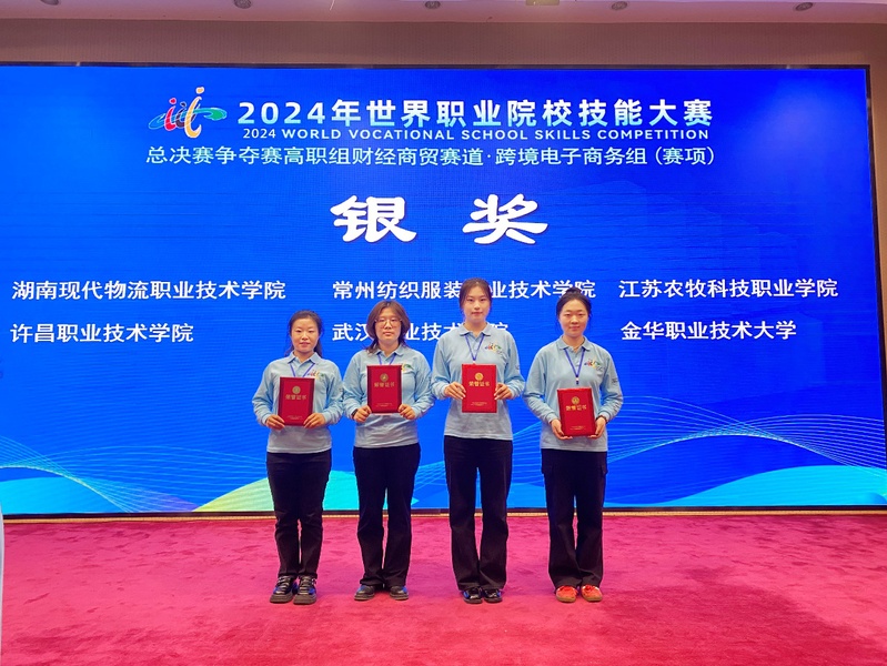 10月26-29日,备受瞩目的首届世界职业院校技能大赛总决赛争夺赛高职组跨境电子商务赛项在山东外贸职业学院开赛。由教育部、国家发展改革委、科学技术部等35部委和事业组织共同主办,吸引了来自全国30个省市的60支顶尖职业院校代表队同台竞技。经过激烈角逐,我校参赛选手付德月(电商233C班)、陆杨逸(商英223本班)、黄依桐(视传2331班)、张韶涵(营销233A班)在领队数商学院院长敬丽华和指导老师张茹、薛卓之的带领下不畏强手、奋勇拼搏,斩获银奖!