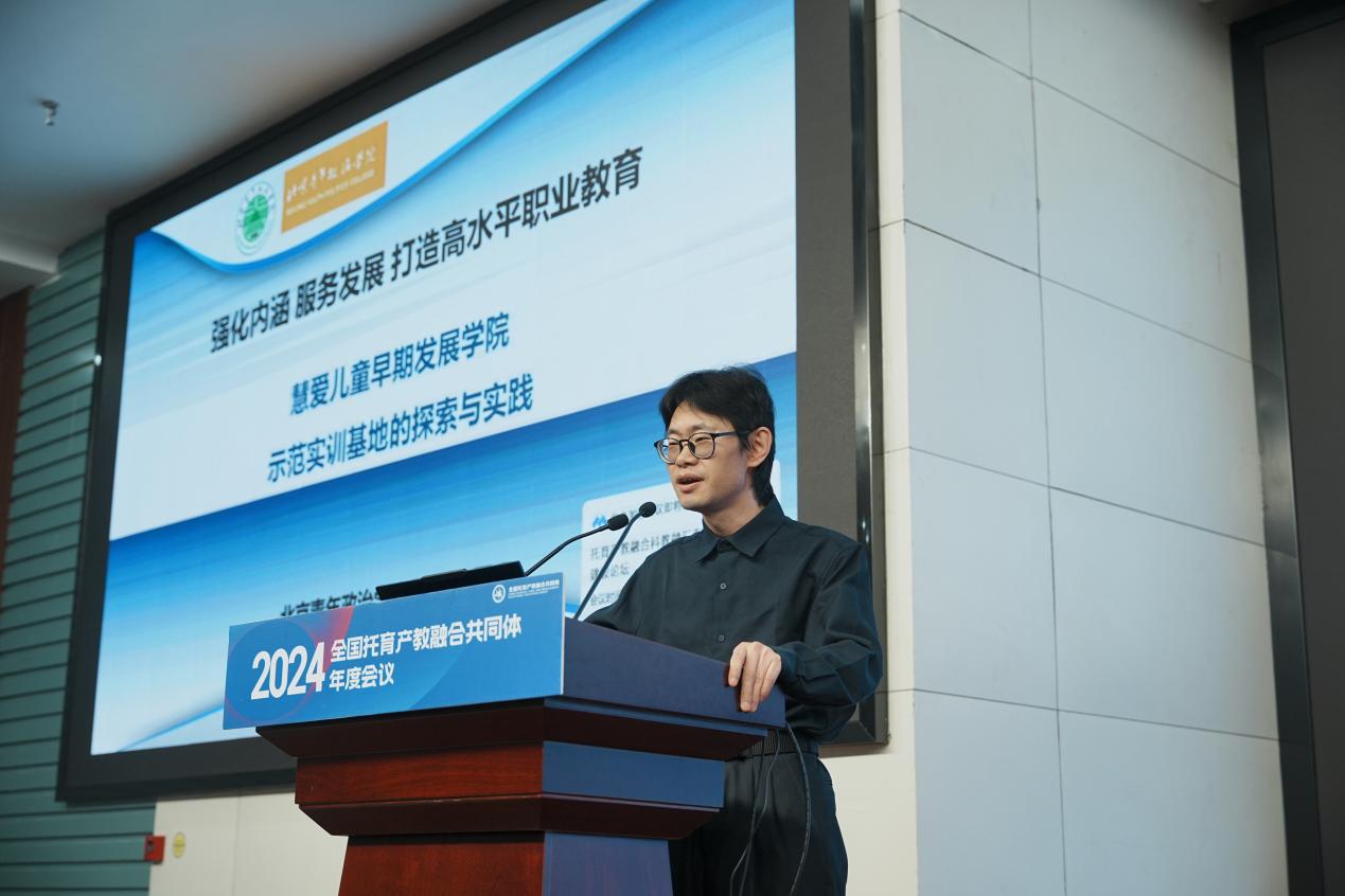 会上,洪霄致欢迎辞。他分享了学院立足自身优势,精准对接托育产业发展需求,积极探索托育人才培养的实践探索和系列成果。随后,他从人才培养、标准制订、“五金”建设及数字化转型等方面汇报了2024年度在推动托育产教融合方面取得的成就。