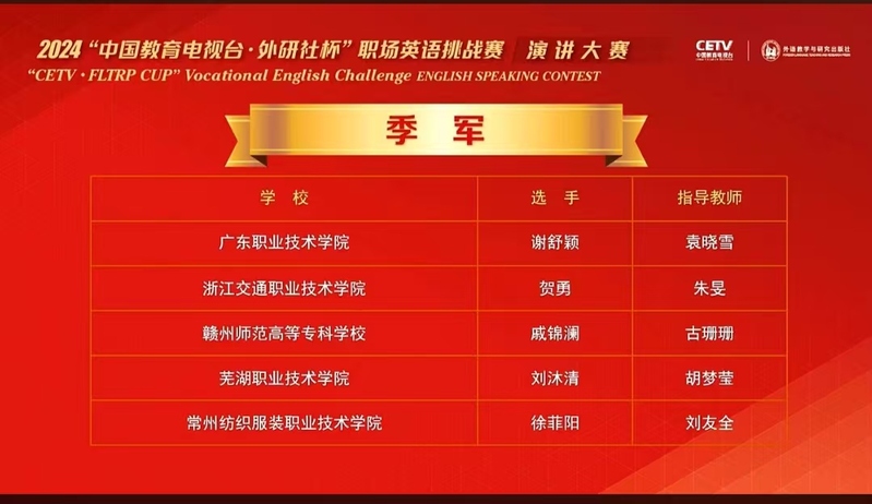 人文与健康学院在2024年“中国教育电视台外研社杯” 职场英语挑战赛全国决赛中斩获佳绩