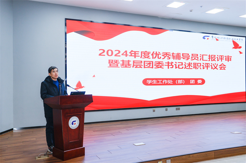 为进一步落实立德树人根本任务,加强辅导员队伍建设,展示我校辅导员良好的精神风貌,激励全体辅导员不断提高政治业务素质,增强育人本领。1月10日下午,我校学生处(部)、团委联合在领秀展厅举办2024年度优秀辅导员汇报评审暨基层团委书记述职评议会议,党委委员、副校长张震宇,党委委员、组织部部长高江荣,党委委员、宣传部部长夏斌,机关党工委书记李洁琦,工会主席胡艳妹,马克思主义学院院长陈利,团委书记朱鹏,人事处副处长陈雪华出席会议,各二级学院党总支副书记,学生处、团委全体工作人员和全体专职辅导员参会。会议由学生处思政科郑可乐主持。