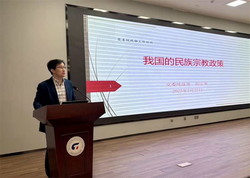 培训伊始,高江荣从我国民族、宗教的地域分布出发,系统阐述了解决民族问题的基本原则和宗教的五大特性,结合新时代民族工作呈现的阶段性特征,江苏地区高校及我校的实际情况,全面解读了我国的民族宗教政策。同时,通过对典型案例的深度分析,提出了一系列具有针对性的应对策略。他强调,全体教师要将民族团结教育作为工作的重要着力点,通过增强学生的中华民族共同体意识,促进校园内各民族学生的深度融合;要时刻关注少数民族学生的学习与生活,帮助少数民族学生顺利“融入学校、融入集体、融入内地”;要熟练掌握党的政策,大力开展社会主义核心价值观教育、理想信念教育、国情教育和法治教育等主题教育活动,丰富校园文化活动,共同维护校园和谐稳定。