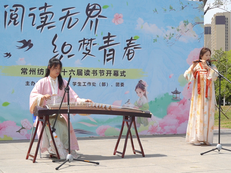 本次读书节以“阅读无界,织梦青春”为主题,旨在通过策划创新多元的活动,激发全校师生的阅读热情,推动书香校园建设。人文与健康学院尤霄老师指导的民乐表演《声声慢》为开幕式拉开序幕。夏斌首先向师生们详细介绍了本届读书节的重点活动安排。随后,张文明发表开幕致辞,强调阅读对个人成长和校园文化建设的重要意义,并郑重宣布常州纺院第十六届读书节开幕。紧接着,张文明与夏斌共同为新设立的'静墨轩'书法角揭幕。