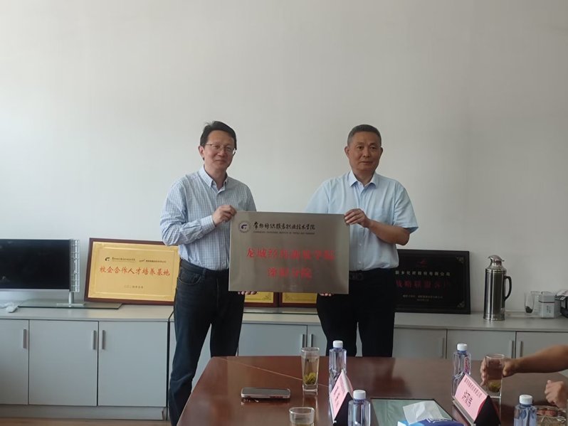 为深化产教融合,拓展学生实习就业渠道,5月14日,我校党委副书记、校长洪霄。党委委员、副校长张震宇、招就处处长高妍一行前往溧阳强鑫纺织有限公司开展访企拓岗专项活动,并举行“龙城经纬新质学院”“大学生实习就业基地”授牌仪式。常州市纺织工程学会理事长张国成、驻会专家左凯杰也参加了活动。溧阳强鑫纺织有限公司董事长毕国新、总经理许双伟、毕超热情接待。