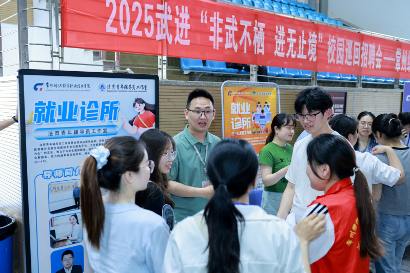 招聘会现场气氛热烈,来自常州科教城所高校的近70002025届、2026届毕业生踊跃参会。为提升就业服务效能,活动特别设置三大特色专区:AI就业赋能专区提供智能化就业信息查询和面试辅导服务;“就业创业在江苏”政策咨询专区,邀请武进、钟楼人才专家现场答疑;职业指导专区则专注于提升毕业生求职竞争力。