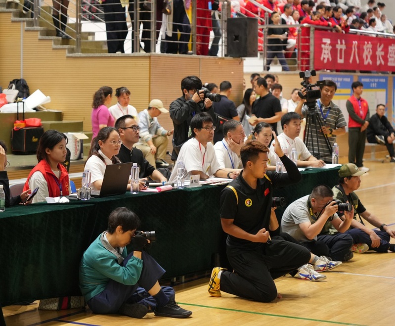 此外,为确保活动顺利开展,我校高度重视、积极部署,提前成立专项工作小组,从场地布置、设备调试到后勤保障、安全保卫,每一个环节都进行了细致安排。体育馆内,整洁的观众席、明亮的灯光、专业的武术表演场地,无不彰显着我校对活动的精心筹备。工作人员们加班加点,对各项设施进行反复检查和调试,为参赛选手和观众提供了舒适、安全的环境。我校十名学生主动报名成为志愿者,他们分布在活动现场的各个角落,为参赛选手和观众提供热情周到的服务。从引导入场、维持秩序到提供咨询、播放音乐、协助颁奖,志愿者们始终面带微笑、耐心细致,用实际行动展现了纺服学子的良好精神风貌。他们的辛勤付出,为活动的顺利进行提供了有力保障,也赢得了参赛选手和观众的一致好评。在比赛过程中,裁判们认真观察每一位选手的表现,严格按照比赛规则进行评分,为选手们提供了一个公平竞争的平台。他们的专业素养和敬业精神,得到了参赛选手和组委会的高度认可。