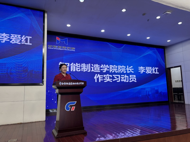 动员会上,智能制造学院院长李爱红首先作岗位实习动员讲话。她结合行业发展趋势与学院人才培养目标,提出正确认识就业形势,重视岗位实习;迅速完成角色转换,从容应对岗位实习挑战;深入了解行业发展趋势,明确职业发展路径;深刻理解岗位实习意义,明确岗位实习学习内容;提升安全意识,践行安全规范等5点要求,强调岗位实习是“将课堂所学转化为岗位能力”的关键环节,鼓励学生以“吾将上下而求索”的心态主动融入企业,在实践中锤炼“工匠之心”。