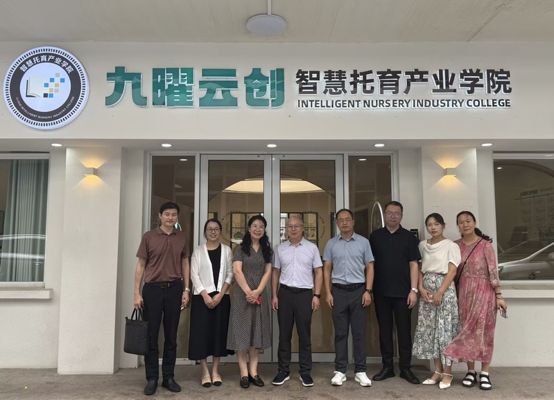 调研团队与九曜教育咨询集团有限公司围绕行业标准制定、人才培养质量提升、产教深度融合等议题展开深入交流。九曜集团作为全国托育机构服务质量评估标准的源头参与单位,已形成“产学研训”闭环体系,拥有近50项早期教育领域专利及6项教育部课题,其“医育结合”“智慧托育”等应用场景与“老幼同堂”服务模式,为行业提供了可复制的实践经验。