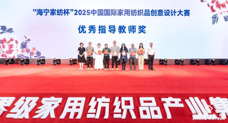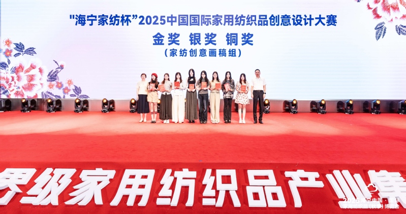 “海宁家纺杯”中国国际家用纺织品创意设计大赛始创于2003年,由中国家用纺织品行业协会主办,是我国首个家纺设计类专业赛事。大赛立足家纺行业发展需求,旨在提升中国家纺设计创新水平、引领家纺设计文化新风尚,迄今已成功举办二十二届。本次大赛由中国家用纺织品行业协会、中国国际贸易促进委员会纺织行业分会、法兰克福展览(香港)有限公司、浙江省海宁市人民政府主办,中国家用纺织品行业协会设计师分会、海宁市许村镇人民政府承办,海宁市家用纺织品行业协会、海宁中国家纺城股份有限公司、海宁市许村镇时尚产业新生代联合会协办。中国纺织工业联合会副会长阎岩、杨兆华,中国家用纺织品行业协会会长朱晓红、副会长兼秘书长王易等领导出席颁奖典礼。大赛吸引了清华美院、鲁迅美院、苏州大学、南京艺术学院等知名艺术院校同台竞技。