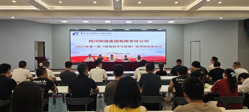8月16日上午,四川和强集团2025年第一期《服装技术与管理》培训班结业典礼在领秀展厅隆重举行。四川和强集团有限公司副总经理岳精忠、生产管理处处长王晓芬、生产管理处一级主任科员温智林,我校党委委员、副校长张文明,服装与时尚设计学院相关负责人、教师代表和全体培训学员参加结业典礼。会议由服装与时尚设计学院院长袁红萍主持。
